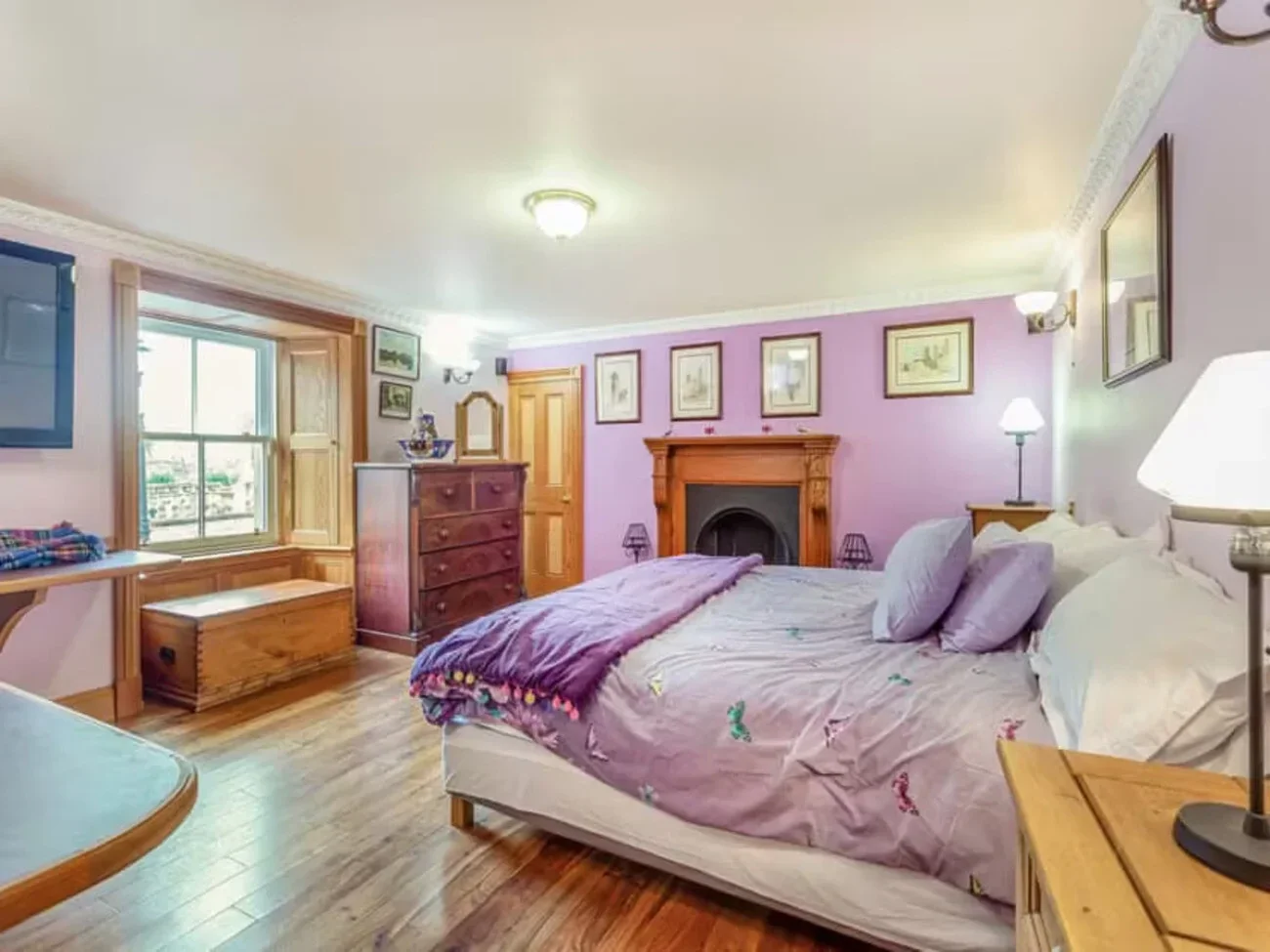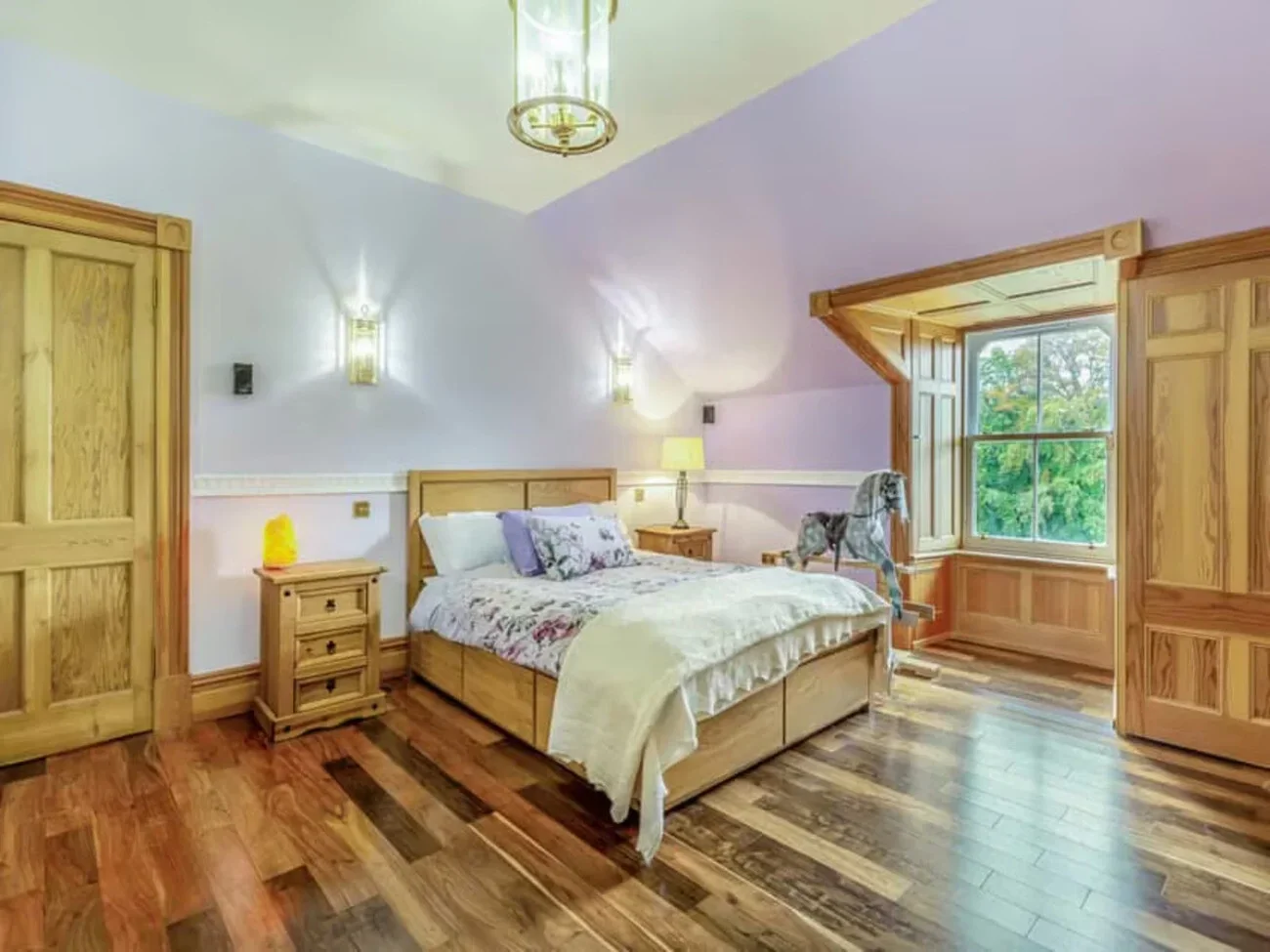 A beautifully appointed ground‑floor bedroom where history and quiet luxury meet. The Lachlan Room features an exceptional 1830 furniture set by J. Ellicock of Aberdeen, bringing nearly two centuries of heritage into the space. Soft light, warm wood, and thoughtful details create a deeply restful environment ideal for guests seeking a peaceful countryside stay.